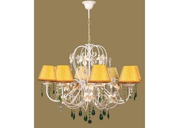 Люстра в классическом стиле с абажурами Цвет основания - белый, золотой штрих Плафоны - ткань золотистого цвета, стеклянные подвески. Материалы: металл/ткань/стекло. Макс. мощность - 8x60 W, E14 Высота: 520 мм. Диаметр (ширина): 810 мм. Продаем в кредит. Более 15 видов оплаты, WM, ЯД. Можно купить без предварительного заказа. Возможен самовывоз. Есть доставка. Доставка: 350.0RUR