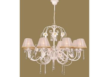 Люстра в классическом стиле с абажурами Цвет основания - белый, золотой штрих Плафоны - ткань белого цвета, подвески из прозрачного стекла. Материалы: металл/ткань/стекло. Макс. мощность - 8x60 W, E14 Высота: 520 мм. Диаметр (ширина): 810 мм. Продаем в кредит. Более 15 видов оплаты, WM, ЯД. Можно купить без предварительного заказа. Возможен самовывоз. Есть доставка. Доставка: 350.0RUR