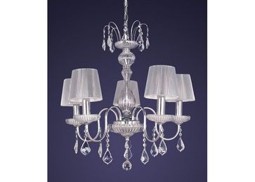 Люстра подвесная металлическая. Декорирована хрустальными подвесками. Способ крепления: вешается на крючок. Особенности люстры: Плафоны выполнены из ткани. Схема сборки и подключения в комплекте. Светильник подключается к внутренней проводке. Управление от центрального выключателя. Производитель WUNDERLICHT Страна Германия Высота 650 мм Диаметр 600 мм Тип лампочки (основной) E14 накаливания либо энергосберегающая Наличие лампочек в комплекте лампочек нет в комплекте Мощность лампы W 40 Количество ламп 5 Площадь освещения 34 м2 Коллекция Grand Opera Тип светильника Люстры Стиль: Классика Способ размещения Подвесной Цвет Металл /Хрусталь/Ткань Арматура - хром, плафоны выполнены из ткани серебристого цвета, прозрачные хрустальные подвески. Продаем в кредит. Более 15 видов оплаты, WM, ЯД. Можно купить без предварительного заказа. Возможен самовывоз. Есть доставка. Доставка: 350.0RUR