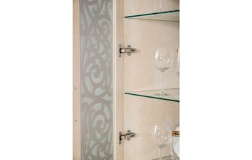 • За распашной дверью со стеклом 3 стеклополки (стекло прозрачное 6 мм.) • Максимальная нагрузка на стеклополку – 8 кг. • Внизу 2 ящика. Размеры фасада – 440х250 мм. • Максимальная нагрузка на ящик – 25 кг. • Крепится к стене с помощью прилагаемой угловой подвески. Крепеж к стене приобретается дополнительно. • Карниз в комплекте.Соединитель карниза под углом 90 градусов 2 шт. в комплекте. • В шкаф дополнительно можно заказать подсветку – светильник, который устанавливается под верхний горизонт модуля иили клипсы стеклополки. None