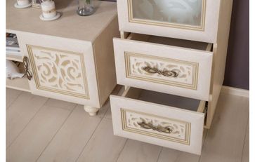 - Алмаз. Любимый дом Александрия New Шкаф одностворчатый с 2 ящиками со стеклом с карнизом (Кожа Ленто Рустика) по выгодной цене 29 599 р. руб.;