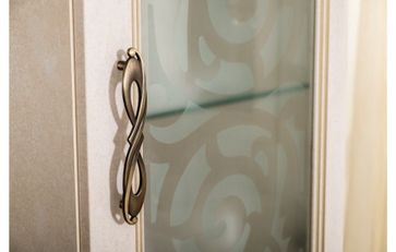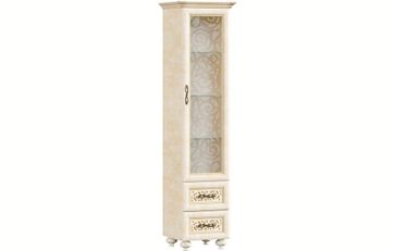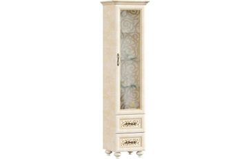 Алмаз. Любимый дом Александрия New Шкаф одностворчатый с 2 ящиками со стеклом с карнизом (Кожа Ленто Рустика)