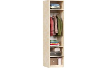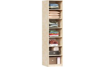 • За распашной дверью с зеркалом: 6 полок и штанга для одежды. • Петля накладная с доводчиком. Угол открывания 110°. • Максимальная нагрузка на полку – 10 кг. None