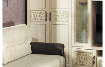 Фасады украшает патина, придавая гостиной вид благородно состаренной классики.