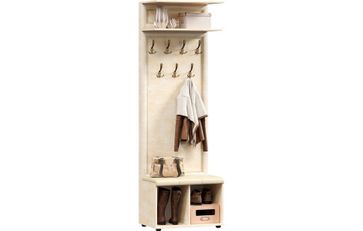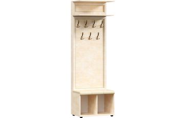 • Вверху антресольная полка. Ниже 7 крючков для одежды. • Внизу тумба с мягким сиденьем сверху. За откидной дверью на кронштейне 2 ниши. • Петля внутренняя с доводчиком. Угол открывания 95°. • Регулируемая опора до 10 мм. • После сборки рекомендуется прикрепить шкаф к стене с помощью угловой подвески. Крепеж к стене приобретается дополнительно. None