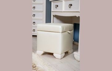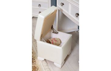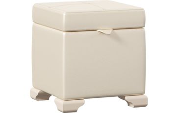 • Сиденье пуфа мягкое (поролон 6 см.) обивка эко кожа. Цвет - светло-бежевый. • Крышка откидывается на кронштейнах, под сиденьем короб для хранения. None