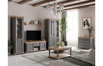 Гостиная «Амели» оникс серый выполнена в провинциальном французском стиле «Прованс». «Амели» оникс серый поможет превратить городскую квартиру в уютный загородный дом, где можно спокойно отдохнуть, восстановить силы после напряженного дня. Цвет фасадов и корпуса - «Оникс серый», приятный приглушенный серый цвет. Гостиная выглядит стильно, очень уютно. Верхние и нижние горизонты шкафов, тумб, комода, выполненные в теплом древесном цвете «Дуб Тортуга», украшают гостиную, добавляют элегантности. Рамочный фасад «Французский рез» очень редкий. Гостиная смотрится благородно, к тому же рамочные фасады очень прочные и мебель прослужит долго. Ручки – ракушки на ящиках, и ручки-кнопки на шкафах в цвете старой бронзы завершают образ гостиной. Ящики на шариковых направляющих бокового крепления и петли с доводчиками добавят удобства в использовании и продлят гостиной срок службы. Ножки мебели – еще один элемент стиля «Прованс» добавляют мебели неповторимый шарм. Выполнены они из ППУ - прочного и гипоаллергенного материала. Обязательный предмет мебели в интерьере «Прованс» – это шкаф-витрина со стеклом. На нижних полках можно хранить скатерти или домашний текстиль – то, что необходимо для приема гостей и душевных вечеров в кругу семьи. Удачной парой для шкафа является пенал. За счет открытых полок, пенал выглядит очень стильно. Вместе эти модули создают законченный образ гостиной. Интересный журнальный стол дополняет гостиную. None