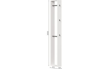 • Вешалка собрана в виде рамы из МДФ профиля 16 мм, окутка цвет «Белый». • На вертикальной стенке 3 металлических крючка. • Есть две стационарные штанги для плечиков. • Максимальная нагрузка на крючок - 7 кг. • Вешалку можно устанавливать со скамьей. None
