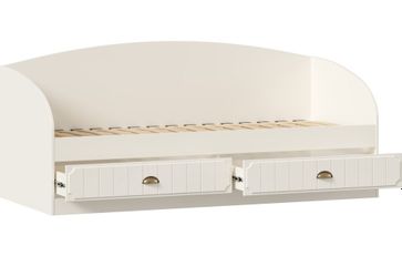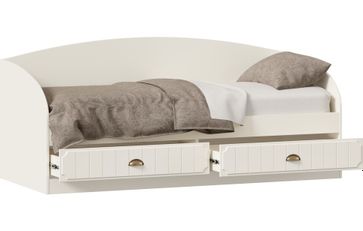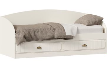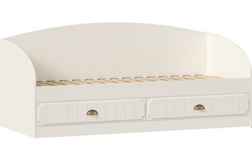 • Размер спального места 800х1900 мм. • Высота спального места без учета матраса составляет 355 мм. • Кроватный настил в комплекте. • Внизу 2 ящика на шариковых направляющих неполного выдвижения. • Высота передней царги (бортика) 408 мм. • Кровать можно дополнить Накладкой мягкой ЛД 680.270 None