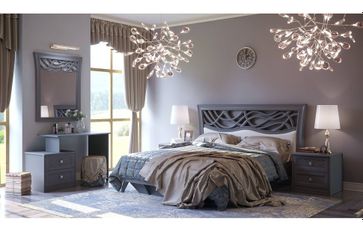 Спальня «Джулия» - яркая представительница нео-классики представлена в цвете «Оникс Серый». Элегантные прямоугольные формы в обрамлении резных карнизов, пилястр, цоколей создают изысканный и благородный ансамбль. Рамочные фасады с резным узором гармонично сочетаются с изящными металлическими ручками. Основным украшением спальни выступает роскошное изголовье кровати и элегантное навесное зеркало с объёмным стилизованным орнаментом. Модульные элементы спальни сочетают функциональность и удобство и без труда позволяют создать необходимую обстановку спальной комнаты. Для любителей романтики и легкости идеально подойдет спальня в белом исполнении. Она подарит ощущение чистоты и свежести. Спальня в цвете «оникс серый» соответствует последним модным тенденциям в интерьере и бесспорно сделает уютной и стильной любую спальню. None