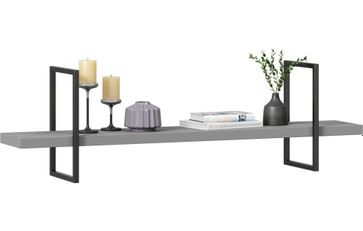 В качестве дизайнерского элемента используются металлические кронштейны, которые выполняют функцию навесов. Полка выполнена из ЛДСП, толщина 32 мм. Максимальная нагрузка на модуль - до 10 кг. Крепеж для кронштейнов (навесов) к стене приобретается дополнительно. None