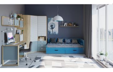 Алмаз. Любимый дом Модекс-2 Детская спальня №4 (Дуб золотой Белый Голубой)