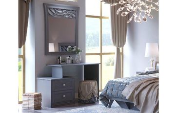 Опоры и изголовье кровати, рама зеркала: выполнены из ППУ цвет «Оникс Серый» матовый.
