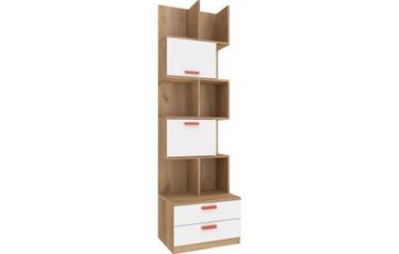 • Внизу 2 ящика неполного выдвижения. Размеры фасадов ящиков 594х156 мм. • Над ящиками, система из полок и перегородок, образующих ниши для хранения: 2 ниши 396х328 мм за распашными фасадами и открытые секции, высотой 328 мм. • Максимальная нагрузка на полку – 15 кг. • Максимальная нагрузка на ящик - 15 кг. • Задняя стенка системы из полок и перегородок из ЛДСП, цвет «Дуб золотой». • Стеллаж крепится к стене с помощью угловой подвески. Подвеска в комплекте. • Крепление для подвески к стене приобретается дополнительно. None