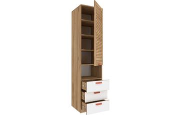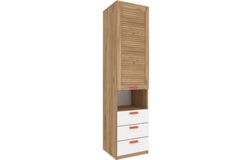 • За распашной рамочной дверью с филенкой брашированной пленкой ПВХ 4 полки. • Расстояние между полками варьируется от 250 до 295 мм. • Под распашной дверью открытая ниша высотой 297 мм. • Внизу 3 ящика неполного выдвижения. Размеры фасадов ящиков 496х183 мм. • Максимальная нагрузка на полку – 15 кг. • Максимальная нагрузка на ящик – 15 кг. • Стеллаж крепится к стене с помощью угловой подвески. Подвеска в комплекте. • Крепление для подвески к стене приобретается дополнительно. • Сборка на правую или левую сторону. None