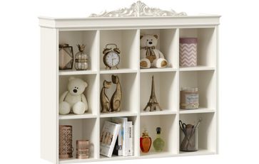 • 12 открытых ниш. • К стене крепится с помощью подвески (комплектуется к полке). • Максимальная нагрузка на весь модуль - 50 кг. • Карниз, корона и пилястры в комплекте. • Размеры указаны с учетом карниза, короны и пилястр. • Крепеж к стене приобретается дополнительно None