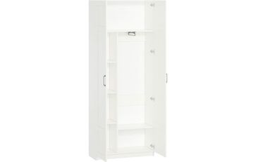 • Вверху полка во всю ширину шкафа для головных уборов. • Внизу: вертикальная перегородка, разделяющая секцию на 2 отделения - левое, шириной 302 мм, с тремя стационарными полками для хранения, правое, шириной 550 мм, с выдвижной штангой для вешалок вверху и ниша для хранения внизу, разделенные стационарной полкой. • Высота ниши со штангой – 1406 мм. • Максимальная нагрузка на полку – 15 кг. • Максимальная нагрузка на штангу – 8 кг. • Шкаф крепится к стене с помощью угловой подвески. Подвеска в комплекте. • Крепление для подвески к стене приобретается дополнительно. None