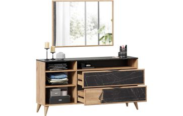 Закажите Алмаз. Любимый дом Шелли Комод 1500 с зеркалом (Дуб золотой Камень Пьетра черный) у компании NON STOP Мебель в Санкт-Петербурге на портале Alloy:
