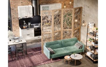 •Секция ширмы состоит из: каркас, вставки из ХДФ фрезерованных и петель карточных (в комплекте 3 штуки). •Ширма собирается из секций до нужной длины. •Ширма может стоять самостоятельно, когда собрана из 2х и более секций. None