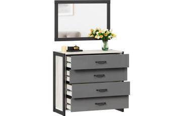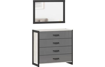 Закажите Алмаз. Любимый дом Техно Комод с 4 ящиками с зеркалом (Дуб Крафт белый Серый шифер) у компании NON STOP Мебель в Санкт-Петербурге на портале Alloy:
