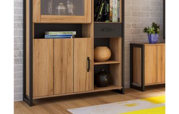 Корпус: ЛДСП 16 мм., цвет «Дуб золотой». ЛДСП 25 мм. цвет «Дуб золотой» и МДФ профиль в финиш-пленке цвет «Черный» - для модуля ЛД 678.040 Стол. Фасад: ЛДСП 16 мм., цвет «Дуб золотой», «Черный». Стекло 4 мм тонированное, цвет «Бронза». Опорная вертикальная рама: МДФ профиль 22 (вертикальные планки) и 18 мм. (горизонтальные планки) в финиш-пленке, цвет «Черный» - во всех исполнениях.