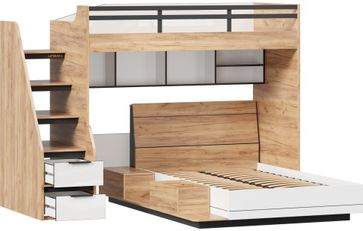 - Алмаз. Любимый дом Урбан Кровать-чердак, полутороспальная кровать с тумбой приставной и полкой (правая Дуб Золотой Белый) по выгодной цене 97 196 р. руб.;
