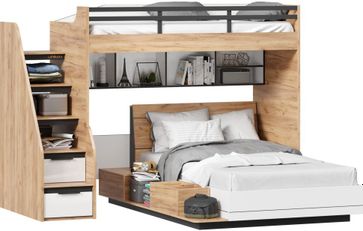 Алмаз. Любимый дом Урбан Кровать-чердак, полутороспальная кровать с тумбой приставной и полкой (правая Дуб Золотой Белый)