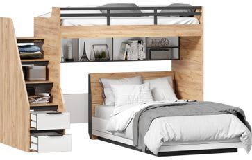 Закажите Алмаз. Любимый дом Урбан Кровать-чердак с полутороспальной кроватью и полкой (правая Дуб Золотой Белый) у компании NON STOP Мебель в Санкт-Петербурге на портале Alloy: