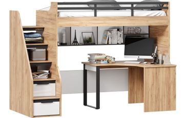 Закажите Алмаз. Любимый дом Урбан Кровать-чердак со столом письменным угловым и полкой (правая Дуб Золотой Белый) у компании NON STOP Мебель в Санкт-Петербурге на портале Alloy:
