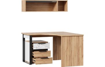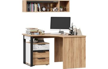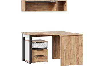 - Алмаз. Любимый дом Урбан Стол письменный угловой с тумбой и полками (Белый Черный Дуб Золотой) по выгодной цене 32 296 р. руб.;