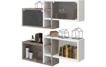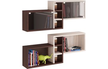 Полка состоит из 2х одинаковых модулей, которые комбинируются по цвету.Плита ДСП 25 мм.Стекла тонированные, в комплект не входят и продаются отдельно. Размер: 1315Ш х 250Г х 545В None