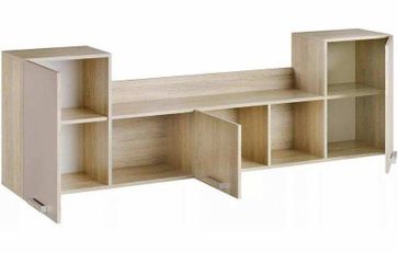 Слева и справа отделения с распашными дверцами и двумя полками в каждом. Между ними располагаются три открытые полки и секция с дверцей. Полка отлично подойдет для детской комнаты. Вместе с пеналами серии Акварель, полка поможет создать стильный и функциональный портал над кроватью. None Есть доставка.