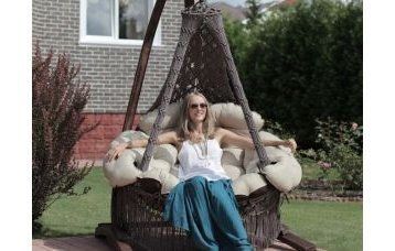 Подвесное кресло качели Cartagena (Картагена) с невероятно мягкими и комфортными подушками. Чехлы у подушек сделаны из хлопко-полиэфирной ткани, она не теряет формы. Наполнитель подушек: материал «холлофайбер» не отсыревает, быстро восстанавливает форму. Для удобства в гамаке-кресле CARTAGENA предусмотрена регулировка по высоте передней части: с помощью фиксаторов внутри декоративной оплетки, можно настроить наиболее комфортное положение кресла. Размеры кресла: ?120x180(H) см. Вес кресла с подушками: 16 кг. Выдерживаемый вес: 200 кг. Цвет: коричневый. Размеры упаковки: 120х30х135 см. Подушки для кресла качелей Картагена приобретаются отдельно, цена = 6750 руб. Дополнительно можно купить чехол для кресла Cartagena, защищающий от пыли и дождя. Смотрите дополнительное фото. Цена чехла = 2200 руб. Водонепроницаемый чехол для защиты кресла от непогоды: