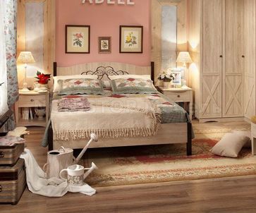 ADELE 2 (Адель) Кровать (1600) Цвет Дуб Сонома / Орех шоколадный Размер 1675х2100х961 Спальное место 1600х2000 Основание стальное ортопедическое с деревянными ламелями (латами) входит в комплект Для этой модели кровати доступны и другие размеры спального места по ширине: 1800, 1400, 1200, 900мм Можно дополнить элементами из серии спальня Адель Кровати из древесного декора Дуб Сонома с витиеватым узором на изголовье и толстыми опорами со скругленными углами в изножье. В коллекции ADELE 5 вариантов ширины спального места кроватей: 1800 мм, 1600 мм, 1400 мм, 1200 мм и 900 мм. Стиль Прованс это деревенский кантри, поэтому здесь не место излишней помпезности. Выполненная в светлом древесном декоре Дуб Сонома с сочетанием тёмного декора Орех Шоколадный, спальня ADELE хороша не только для загородного дома, но и для городской квартиры. Яркие акценты оттеняют неброские пастельные цвета, гармонично сочетаясь между собой. Такое сочетание в точности передает легкость и изящество чарующего стиля "французской провинции". None