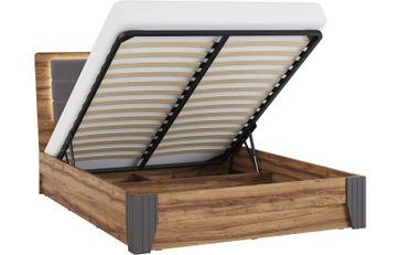 Кровать двуспальная Моника с мягкой спинкой комплектуется подъемным механизмом. Ниша под основанием кровати дарит дополнительное место для хранения постельного белья и других вещей. Матрас приобретается отдельно.
