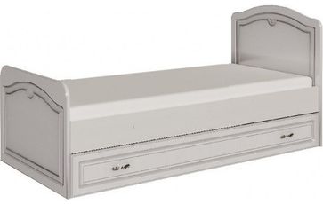 Кровать одинарная Melania 05 80х190 — подойдёт и для дошкольника, и для подростка. Каркас производится из ЛДСП Рамух белый толщиной 16 и 22 мм. Фасад изделий изготавливается из МДФ толщиной 16 мм с ПВХ пленкой Белое дерево матовое, с фрезерованным орнаментом, патинированным серебром. После нанесения патины фасад покрывается лаком, что создает дополнительную защиту поверхности. Матрас и ящик бельевой приобретаются дополнительно. None Есть доставка.