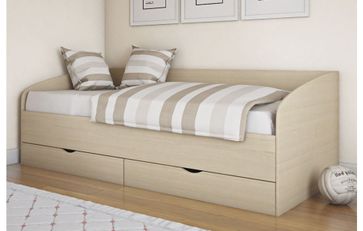 Кровать Соня с ящиками — уютная односпальная кровать, изготовленная из ЛДСП. Кровать имеет форму диванчика, укомплектована 2 выкатными ящиками. Основание спального места — настил ДСП. Благодаря спокойному декору кровать может органично вписаться практически в любой интерьер. Матрас для кровати приобретается дополнительно. None Страна производства: Россия Есть доставка.