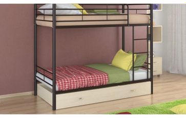 Двухъярусная кровать Севилья-3Я — два полноценных спальных места. Каркас кровати изготовлен из металлической трубы. Прочная стальная конструкция имеет допустимую нагрузку: верхнее сп. место — 100 кг, нижнее сп. место — 150 кг. Такая детская мебель обеспечит разумную экономию пространства в вашем доме и комфортный сон детей. Верхнее спальное место оборудовано бортиком безопасности, а нижнее — вместительным бельевым ящиком.