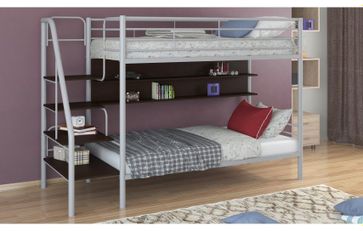 Двухъярусная кровать Толедо-П — модель, выполненная из металла. Спальные места 900х1900. Верхнее спальное место огорожено бортиками безопасности. Под верхним ярусом расположен блок с полками для книг (ЛДСП). Для подъема на 2 ярус используется лестница-этажерка со ступеньками-полочками, изготовленными из ЛДСП. Диаметр трубы каркаса 40 мм, допустимая нагрузка: верхнее сп. место — 100 кг, нижнее сп. место — 150 кг. Матрасы приобретаются дополнительно. Цвета ЛДСП: дуб и венге. Цвета корпуса: слоновая кость, серый, венге и черный. None Есть доставка.