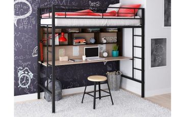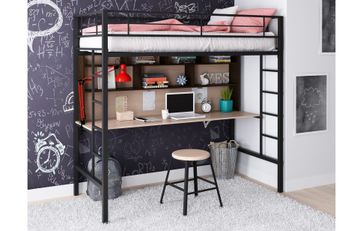 Кровать-чердак Севилья 1.2 — металлическая кровать с диаметром трубы каркаса 40 мм, допустимая нагрузка до 150 кг. Спальное место оборудовано бортиками безопасности. Кровать оборудована столешницей и секцией с полочками для книг и принадлежностей. Каркас кровати окрашен порошковыми красками: серый, черный, коричневый или слоновая кость. Столешница и полка ЛДСП изготавливаются в декорах: стол / полка — Венге, Дуб молочный, Венге / Дуб молочный или Дуб молочный / Венге. Высота от пола до спального места 1450мм. Матрас приобретается отдельно. None Есть доставка.