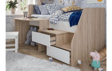 Детская кровать с ящиками Алиса сочетает в себе уютное спальное место и стол, а потайная ниша станет любимым местом игр ребенка