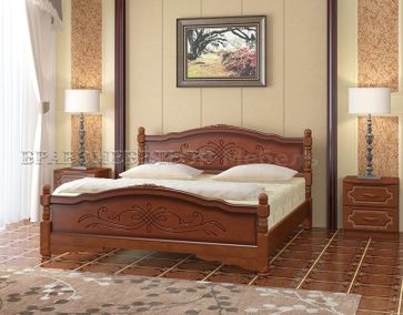 Кровать из массива Карина-12 Размер 1670х2120х935 Спальное место 1600х2000 Кровать "Карина-12" изготовлена из массива сосны с элементами из МДФ. Кровать производится в цвете "орех". Модель имеет стандартную длину спального места - 2000 мм и несколько вариантов ширины: 1200,1400 и 1600 мм. (по меньшим размерам цену уточняйте) Кровать может комплектоваться как матрасом односторонней мягкости на жестком каркасе (идет по дополнительной стоимости), так и металлическим каркасом с ламелями под 2-сторонний матрас (входит в стоимость). None