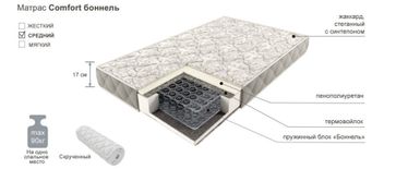 Матраc Comfort — это современный ортопедический матрас с блоком зависимых пружин Боннель. Состав матраcа: 1.Пружинный блок: "Боннель" (115 пружин на 1м2) 2.Наполнители: войлок термоскреплённый (плотность 500 г/м2), пенополиуретан (20 мм). Натуральный войлок - это прочный, эластичный материал, эффективно поглощающий звук, устойчивый к воздействию температуры, экологически безопасный. Высокая воздухопроницаемость, отличный тепло- и влагообмен, гипоаллергенность, способность выдерживать продолжительные нагрузки – это замечательные характеристики второго наполнителя - пенополиуретана. Чехол: жаккард, стеганный на синтепоне 100 г (62% полиестер, 38% полипропилен). Матрасы серии Комфорт покрыты жаккардом с глубокой стёжкой, которая делает поверхность матраса выпуклой и придает дополнительную поверхностную упругость. Все используемые материалы сертифицированы и разрешены к применению органами санитарно-эпидемиологического надзора России. Технические характеристики: Материалы: пенополиуретан, войлок, жаккард. Пружинный блок: боннель Жёсткость: средняя. Допустимая нагрузка: 105 кг. Гарантия: 1 год (при правильной эксплуатации). Для удобства транспортировки можно заказать матрас в скрученном виде. None Страна производства: Россия Есть доставка.