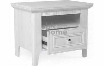 Прикроватная тумба дополнена открытой полкой и ящиком. Шариковые направляющие надежно удерживают ящик при открывании. None Есть доставка.