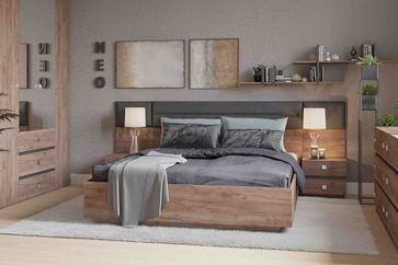 Neo (Нэо) 307 Кровать Люкс с подъемным механизмом (1600) Цвет дуб табачный Craft Размер 1701х2032х1006h Спальное место 1600х2000 (есть также варианты со спальным местом по ширине 1400 и 1800 - стоимость уточняйте) Можно дополнить элементами спальни НЭО Особенности Горизонтальные щиты из ЛДСП толщиной 16 мм Мягкое изголовье с утяжкой Ударопрочная кромка ПВХ 2 мм Основание с подъемным механизмом Ткань - экокожа черного цвета Материалы ЛДСП 16 мм Кромка ПВХ 0,45 мм Кромка ПВХ 2 мм Газлифты подъемного механизма Допустимая нагрузка на подъемную кровать при закрытом состоянии подъемного механизма - 300 кг с учетом веса матраца, который не должен превышать, соответственно, 70 кг. Рекомендуемая высота матраса - не менее 16 см. В конструкции кровати применяются газлифты с улучшенным шарнирным соединением, которое облегчает установку газового лифта и обеспечивает надежность при эксплуатации. Успокаивающий благородный оттенок корпуса с контрастной вставкой на изголовье делают облик кровати строгим и одновременно элегантным. Мягкое изголовье в экокоже черного цвета позволит расслабиться в конце рабочего дня и с комфортом почитать перед сном. В холодные дни экокожа будет дарить тепло и мягкость, а в жаркий день радовать прохладой. Высокая задняя стенка Neo 41 Тумба прикроватная выступит прекрасным продолжением кровати. За счет утопленной вглубь опоре со стороны изножья, кровать визуально «парит» над полом, одновременно сохраняя устойчивость конструкции. Подъемное основание идет в одном комплекте с корпусом, что позволит расходовать дорогие квадратные метры с максимальной рациональностью. Благодаря газлифтам, кровать поднимается без усилий и обеспечивает доступ к вместительному внутреннему коробу. На дно свободной ниши кладутся листы ХДФО, предохраняющие вещи от запыления. Допустимая нагрузка на подъемную кровать при закрытом состоянии подъемного механизма - 300 кг с учетом веса матраца, который не должен превышать, соответственно, 70 кг. Рекомендуемая высота матраса - не менее