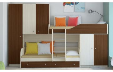 Двухъярусная кровать Лео — это замечательное решение для детской комнаты. Благодаря конструкторским особенностям и продуманному дизайну эта модель станет настоящим украшением комнаты! Высота безопасного бортика составляет 32 см. Возможно изготовление полностью разноцветных фасадов (цвет каждого элемента фасада можно выбрать отдельно) None Есть доставка.