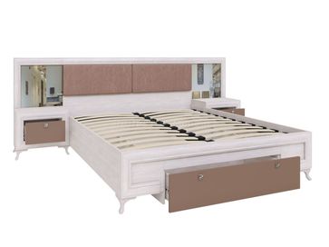 Саванна М06 Кровать с ортопедическим основанием 1,6 и тумбами Размер (ГхШхВ): 2060х2660х1000 мм Спальное место 1600х2000 Цвет каркас бодега светлый, фасад мокко / зеркала Можно дополнить элементами спальни и гостиной Саванна None