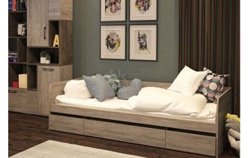 В кровати расположены три бельевых ящика на выкатных роликах. Основание для матраса в конструкции кровати. Дополнительно рекомендуем приобрести матрас. None Есть доставка.