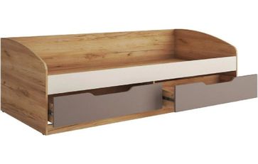 RICH Кровать-тахта КР-002 — кровать из детской серии RICH. Два необычных цветовых решения для фасада гарнитура – «Мята + Сумеречный голубой» и «Миндаль + Глиняный серый». Оригинальные фасады с фрезерованными выемками, которые заменяют ручки. Выдвижные ящики кровати оборудованы надежными шариковыми направляющими. Изделия линейки Rich оснащены подпятниками для того, чтобы снизить давление на напольное покрытие и не травмировать его при передвижении элементов гарнитура. Материал корпуса и фасада ЛДСП. None Страна производства: Россия Есть доставка.