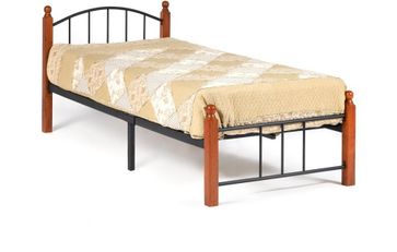 Односпальная кровать. Материал: ножки - дерево гевея; основание, изголовье, изножье - металл. Цвет: дерево - красный дуб, металл - чёрный. Страна-производитель: Малайзия None Страна производства: МАЛАЙЗИЯ Есть доставка.